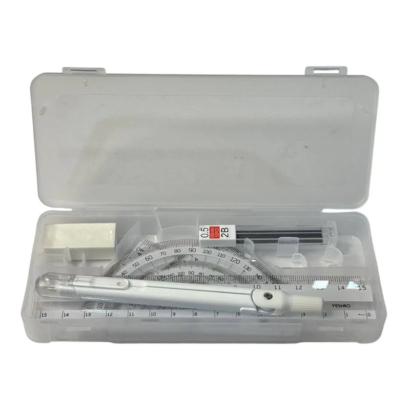 - تنوع ابزارها: وجود خطکش، نقاله و گونیا در کنار پرگار، این ست را به یک مجموعه کامل برای انجام تمرینهای هندسی و طراحی تبدیل کرده است.