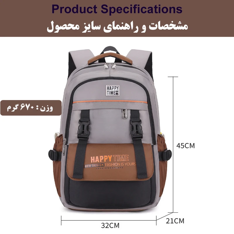 کولهپشتی مدرسه هپی تایم کد 5084 با طراحی ساده و در عین حال کاربردی، یکی از گزینههای مناسب برای دانشآموزان دبستان و راهنمایی است. وجود ۶ جیب خارجی باعث میشود وسایل پرکاربرد مانند بطری آب، خوراکی یا لوازمالتحریر همیشه در دسترس باشند. همچنین جیب داخلی فضای مناسبی برای کتابها و دفترها فراهم میکند و به نظمدهی بهتر کمک مینماید.