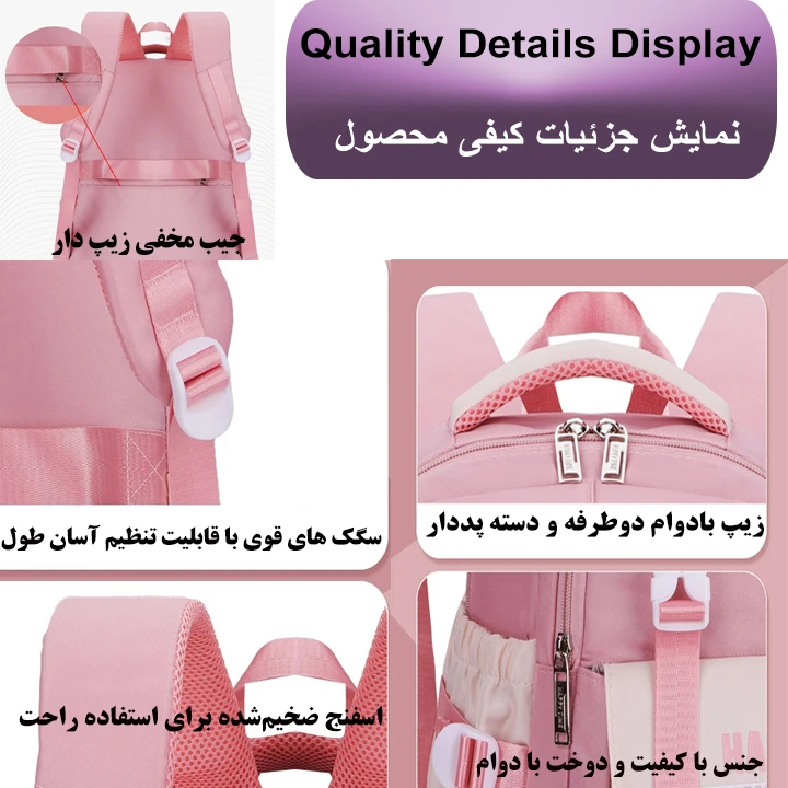 جنس مقاوم و دوخت محکم این محصول باعث میشود در برابر استفاده روزانه و فشار ناشی از حمل کتابها دوام بالایی داشته باشد. طراحی بندهای ارگونومیک نیز به کاهش فشار روی شانهها کمک میکند و حمل طولانیمدت را راحتتر میسازد.